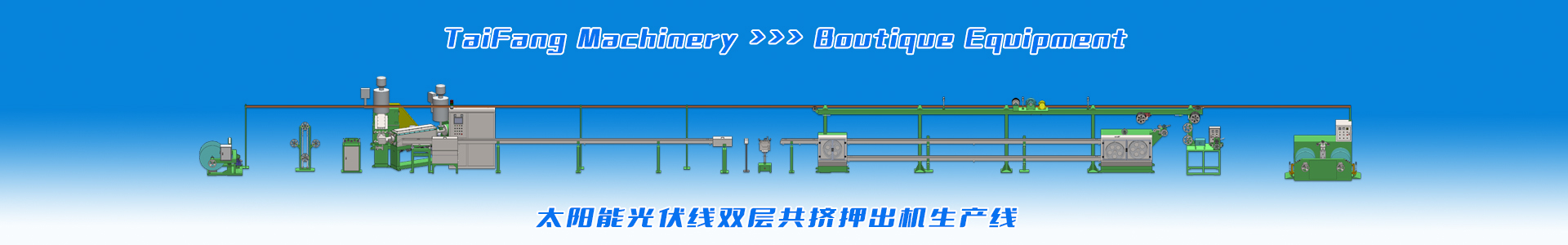 適應于生產太陽能光伏電纜、低煙無鹵料電纜、輻照電纜、XL-PE交聯(lián)聚乙烯電纜,主要有高速絞線機、雙層共擠及串聯(lián)生產線設備。